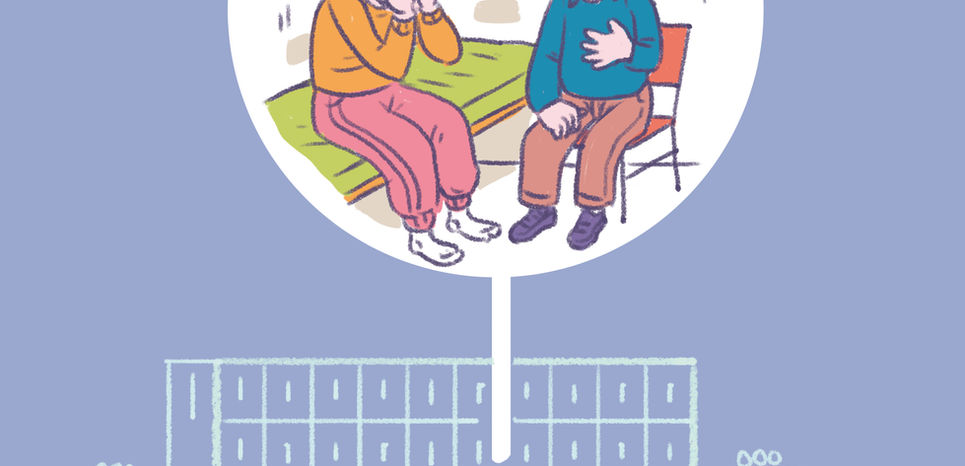 Farblich reduziertes Wimmelbild für den Arbeitsintegrationprozess von Kleika.
